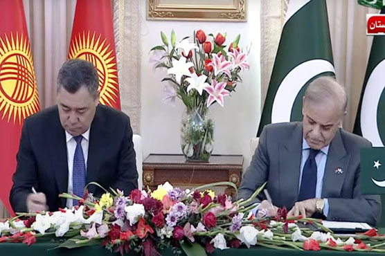اسلام آباد: پاکستان 2 سال میں کرغزستان سے تجارتی حجم 200 ملین ڈالر تک لیجانے کیلئے پُرعزم ہے، دونوں ممالک کے درمیان متعدد اہم معاہدوں اور مفاہمتی یادداشتوں کے تبادلے کئے گئے ہیں۔وزیراعظم ہاؤس اسلام آباد میں کرغزستان اور پاکستان کے درمیان مختلف شعبوں میں مفاہمتی یادداشت کے تبادلے کی تقریب ہوئی، جس میں کرغزستان کے صدر صادر ژاپاروف اور وزیراعظم شہباز شریف شریک ہوئے۔اس موقع پر وزیر اعظم شہباز شریف اور کرغزستان کے صدر صادر ژپاروف کے درمیان بشکیک اور اسلام آباد کو جڑواں شہر قرار دینے کا معاہدہ ہوا ہے، پاکستان اور کرغزستان کے درمیان کان کنی اور جیوسائنسز میں تعاون کی مفاہمتی یادداشت کا تبادلہ ہوا۔تقریب کے دوران پاکستان فارن سروسز اکیڈمی اور کرغزستان ڈپلومیٹک اکیڈمی کے درمیان مفاہمتی یادداشت کا تبادلہ ہوا جبکہ وزیر خارجہ اسحاق ڈار اور کرغزستان کے وزیر خارجہ نے دستاویز کا تبادلہ کیا، دونوں ممالک کے درمیان سیاحت اور توانائی کے شعبے میں تعاون کی مفاہمتی یادداشت کا تبادلہ ہوا۔پاکستان اور کرغزستان کے درمیان سزا یافتہ قیدیوں کے تبادلے اور ثقافت کے شعبے میں معاہدہ ہوا ہے، وزارت قانون و انصاف اور کرغزستان کی وزارت انصاف میں مفاہمتی یادداشت کا تبادلہ ہوا۔وزیراعظم یوتھ پروگرام اور کرغز ثقافت، اطلاعات، کھیل و امور نوجوانان کی وزارت میں مفاہمتی یادداشت کا تبادلہ ہوا۔