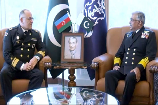 راولپنڈی: پاک فوج کے شعبہ تعلقات عامہ کے مطابق آذربائیجان کی بحریہ کے کمانڈر ریئر ایڈمرل شاہین محمدوف نے نیول ہیڈکوارٹرز کا دورہ کیا جہاں پاکستان اور آذربائیجان کے درمیان بحری تعاون مزید بڑھانے پر اتفاق کیا گیا۔آئی ایس پی آر کے مطابق آذر کمانڈر نے نیول ہیڈکوارٹرز میں پاک بحریہ کے سربراہ ایڈمرل نوید اشرف سے ملاقات کی، ملاقات میں علاقائی بحری سلامتی اور دفاعی تعاون پر تبادلۂ خیال کیا گیا۔پاکستان نیوی کے چاق و چوبند دستے نے معزز مہمان کو گارڈ آف آنر پیش کیا،آذربائیجان نیوی کے کمانڈر نے یادگارِ شہداء پر پھولوں کی چادر چڑھائی۔آئی ایس پی آر کے مطابق ملاقات میں پاکستان اور آذربائیجان کے درمیان بحری تعاون کو مزید وسعت دینے پر اتفاق کیا گیا، تربیت اور دفاعی شعبے میں تعاون بڑھانے کے امکانات پر گفتگو ہوئی، پاکستان نیوی کے جاری منصوبوں پر معزز مہمان کو بریفنگ دی گئی۔آذربائیجان کے امیر البحر کے دورہ سے پاکستان اور آذربائیجان کے درمیان برادرانہ تعلقات مزید مضبوط ہوں گے، آذربائیجان نیوی کے کمانڈر کا دورہ دوطرفہ بحری تعاون کے لیے اہم ہے۔